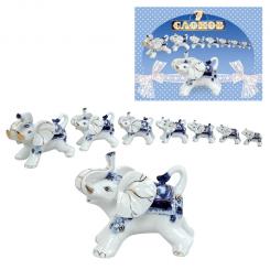 Figuren-Set "7 Elefanten" blau, aus Porzellan