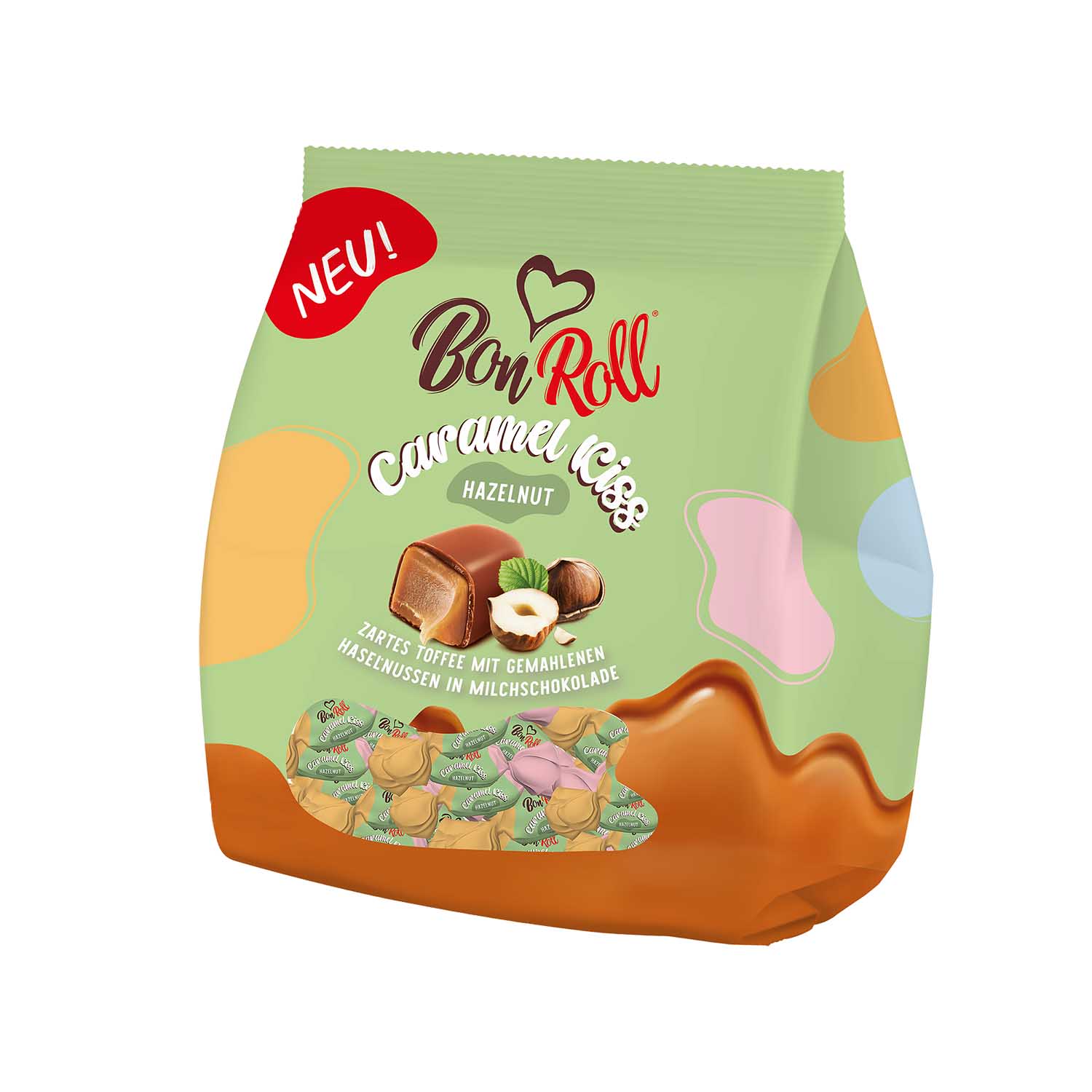 - 2 x BonRoll Caramel-Toffees in Milchschokolade Haselnuss, 120 g: Vegetarisches zartes, schokoladiges Caramel-Toffee mit gemahlenen Haselnüssen in Milchschokolade. Cremig-softe, himmlisch-leckere Schokoladenspezialität mit zartschmelzendem Karamellgeschmack.