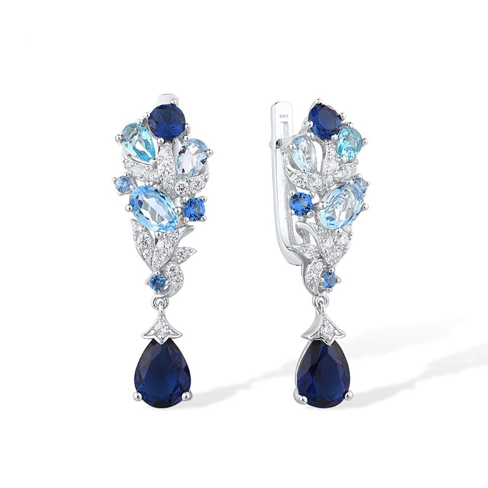 Sokolov Ohrhänger aus 925 Silber mit farblosen Zirkonia, blauen Spinellen und Glaskristallen