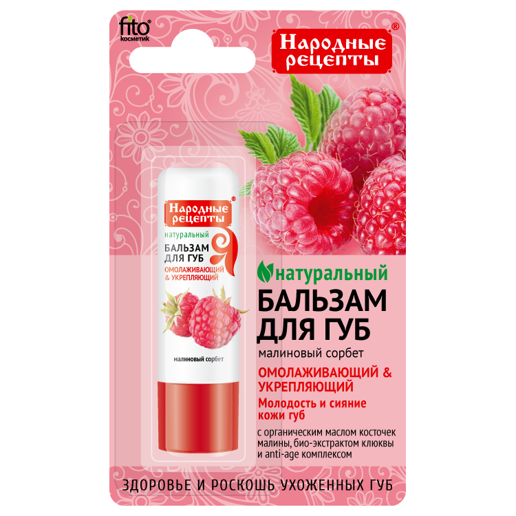 Fito Kosmetik, Serie "Volksrezepte" - Lippenbalsam  "Himbeerensorbet" verjüngend