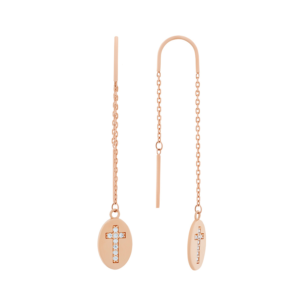 Ohrhänger mit Zirkonia-Kreuz aus 585 Rotgold