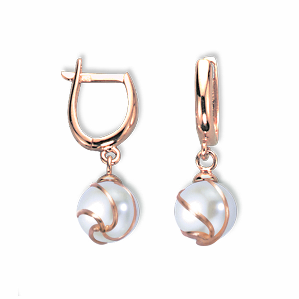 Ohrhänger aus 585 Rotgold mit echten Perlen