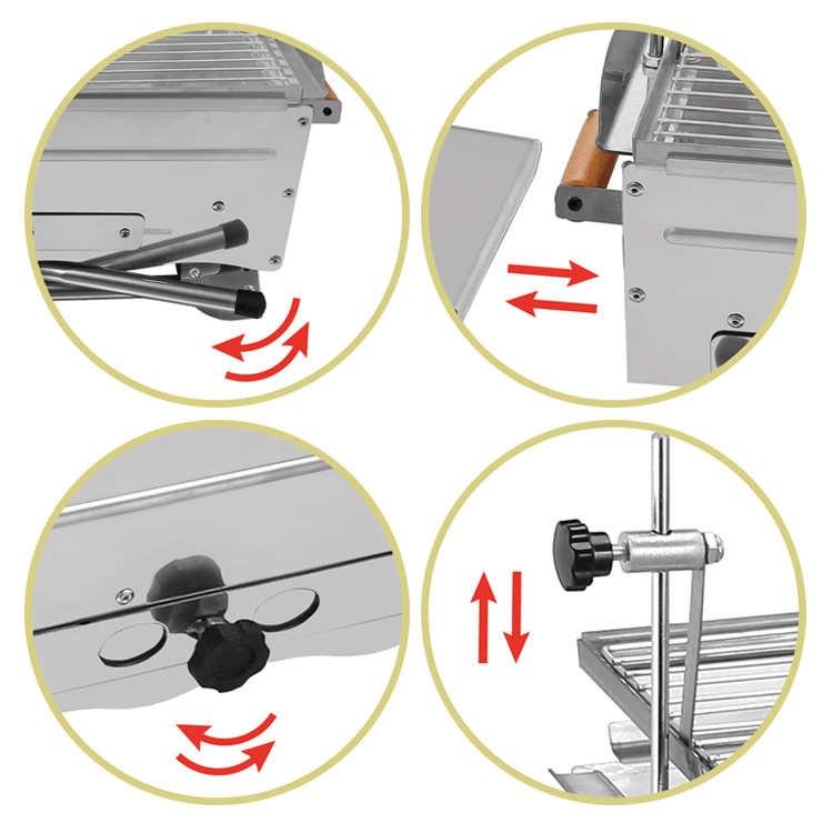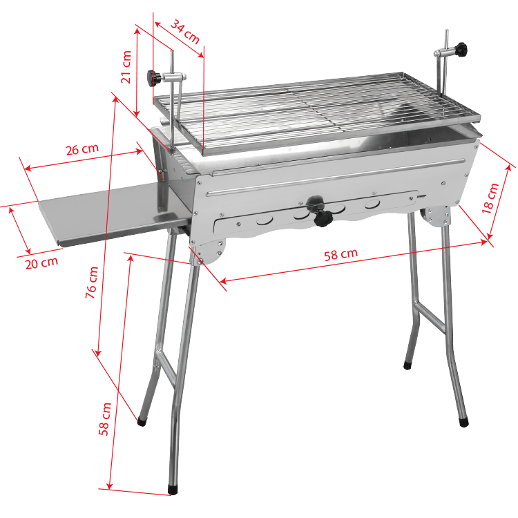 Außerdem hat der Grill Holzgriffen zum Tragen und verstellbare Grillrosthöhe.