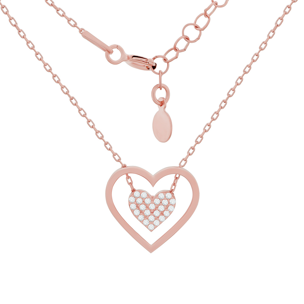 Doppel-Herz Anhänger mit Swarovski Kristallen aus 925 Silber mit Kette, rosévergoldet