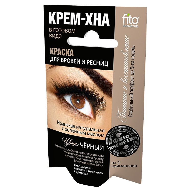 • Creme-Henna für Augenbrauen und Wimpern ist ein natürliches Färbemittel, das weder Ammoniak noch Wasserstoffperoxyd enthält