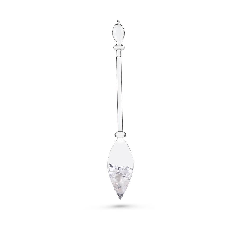 - Material: Glas, Edelstahl, Silikon, Edelsteine (Mondstein (Labradorith) & Bergkristall)