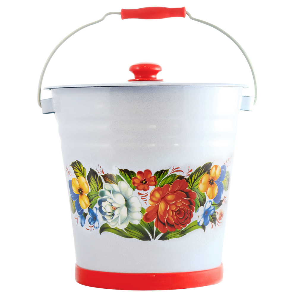 Eimer mit Deckel "Tatjana" emailliert, 12 L