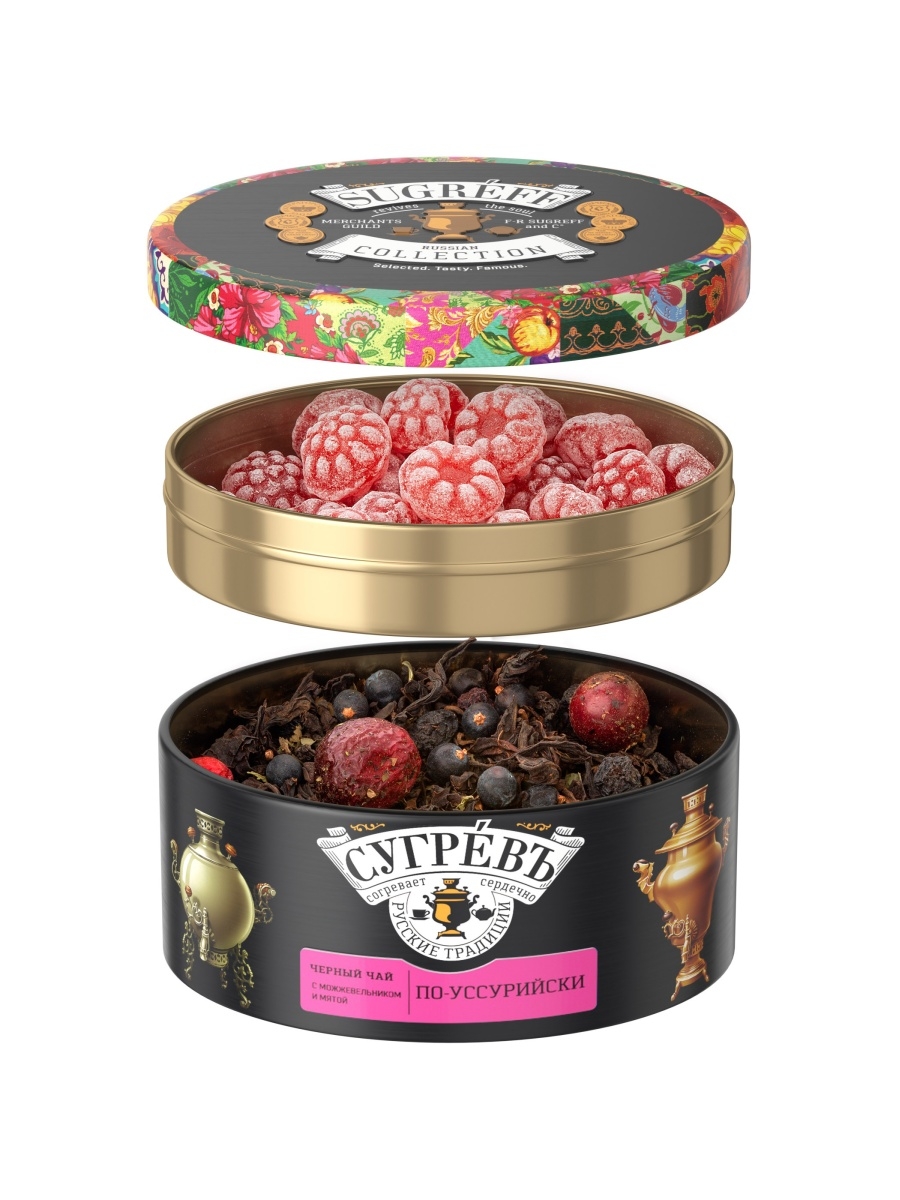 Das Ussurijsk Teeset ist ein hervorragendes und unvergessliches Geschenk für alle Gelegenheiten. Es besteht aus einer einzigartigen Mischung aus Tee und 100 % natürlichen Bonbons mit Himbeergeschmack. Tee „Ussurijsk“ wird auf Basis einer Mischung natürlicher fernöstlicher Kräuter mit der Zugabe von Minze und Wacholderbeeren hergestellt, die dem Getränk frische Noten verleihen und den reichen Geschmack des schwarzen Langblatttees mit einer angenehmen Süße unterstreichen -säuerliches Nadelaroma.Zutaten Tee: schwarzer indischer Assam-Tee, Wacholderbeeren, Minze, Aronia, Cranberry, 40 g