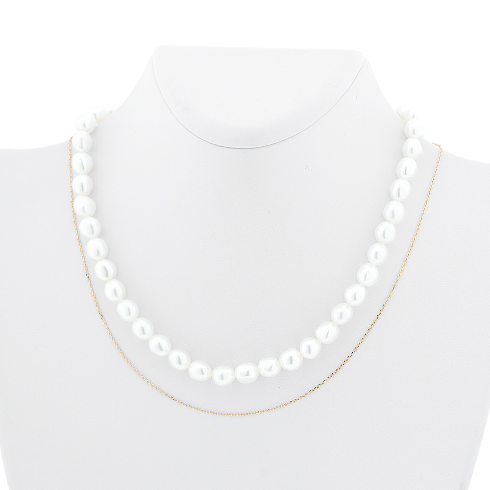 Elegantes Perlencollier mit gelb vergoldeter 925 Silberkette