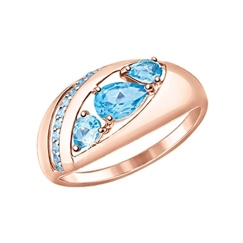 Sokolov Damenring aus 585 Rotgold mit blauem Topas und Zirkonia
