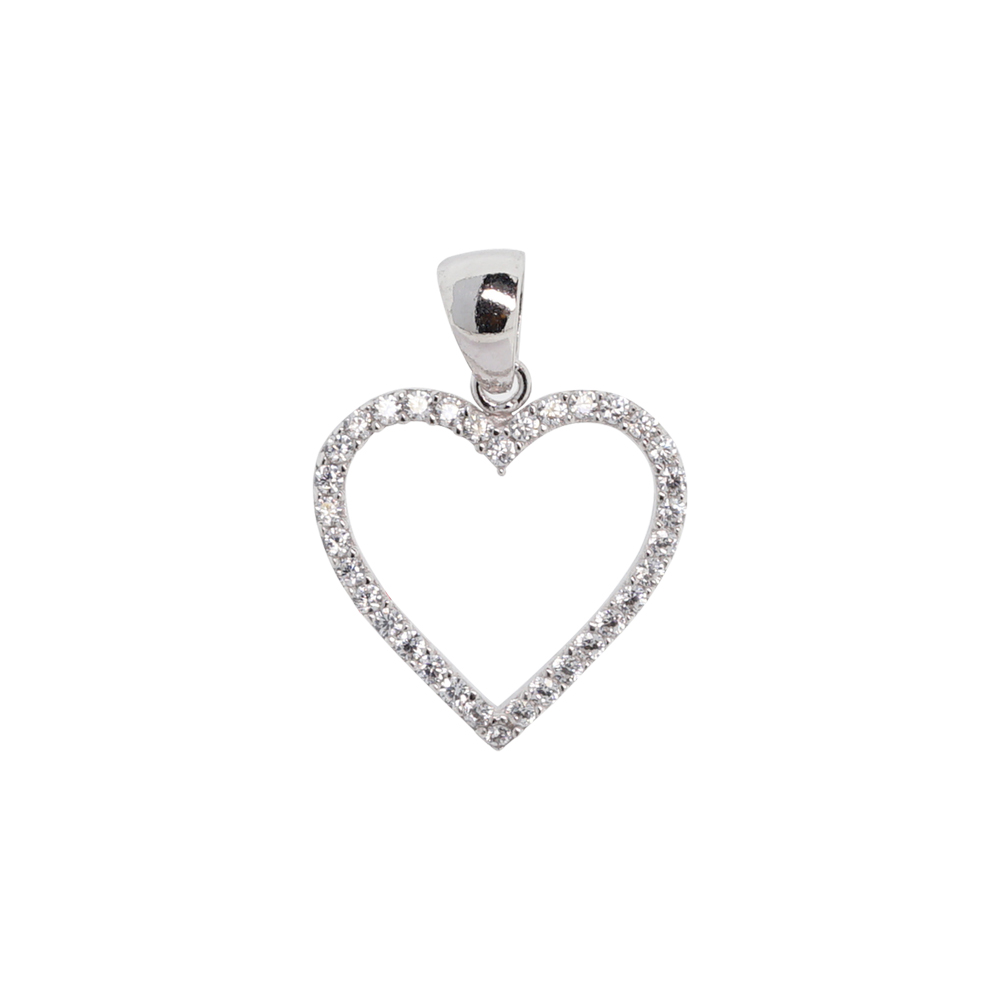 Herz-Anhänger aus 925 Silber mit farblosen Zirkonia übersät + Silberkette 50 cm