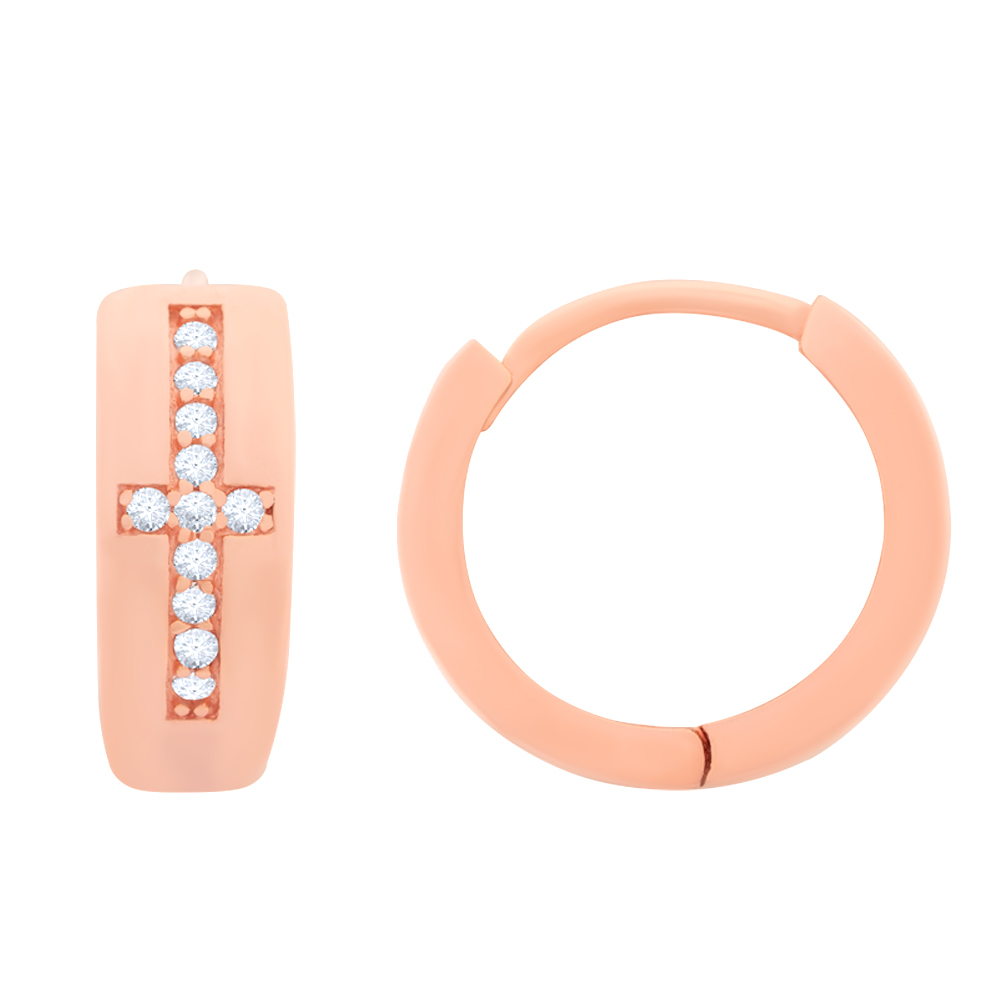 Creolen aus 925 Silber rosévergoldet, mit Zirkonia und Schnappverschluss