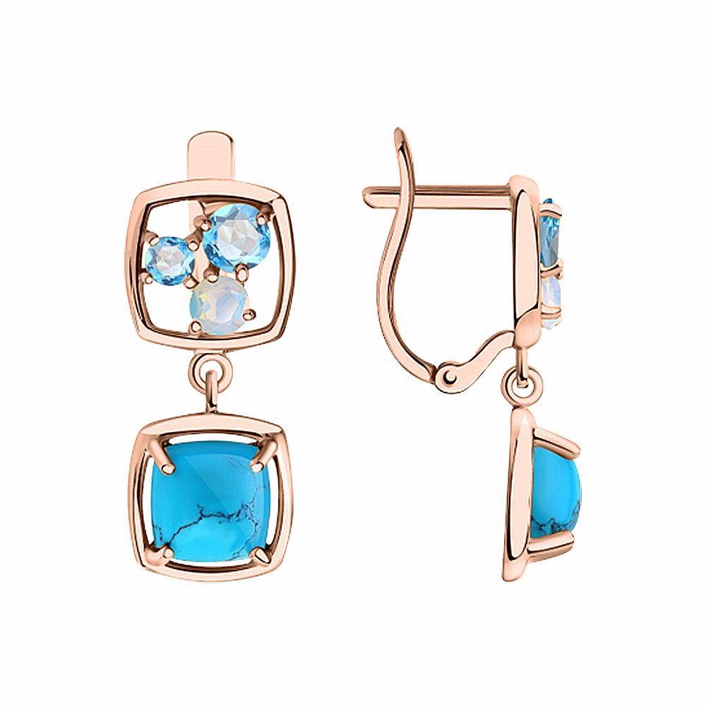 Ohrhänger aus 585 Rotgold mit Türkis HTS, Topas und Sitall