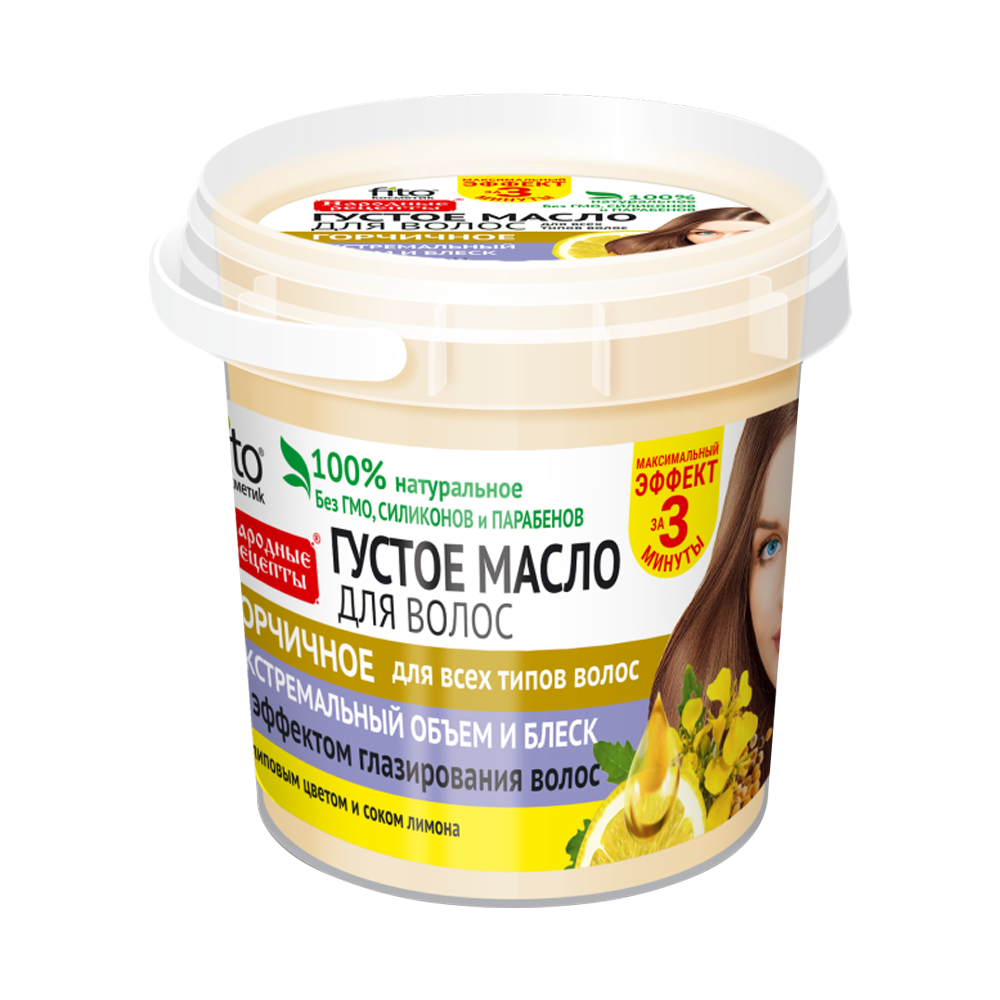 Die Senf-Haarbutter von Fito Kosmetik stärkt und schützt Ihr Haar, regeneriert es, nährt und spendet Feuchtigkeit. Die Haarbutter lässt sich leicht auftragen, beugt Haarausfall, Haarbruch und Spliss vor, stimuliert das Haarwachstum, verleiht Volumen und einen strahlenden Glanz. Das Haar wird dicker, elastischer und dichter, lässt sich leicht bürsten und behält lange Zeit ein gesundes und gepflegtes Aussehen. Für alle Haartypen geeignet.Anwendung: