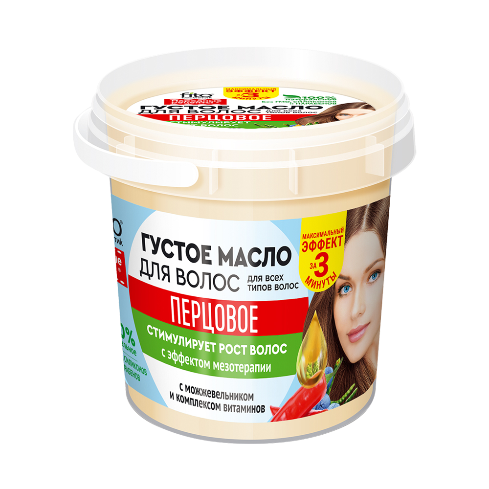 Die Pfeffer-Haarbutter von Fito Kosmetik stärkt und schützt Ihr Haar, regeneriert es, nährt und spendet Feuchtigkeit. Die Haarbutter lässt sich leicht auftragen, beugt Haarausfall, Haarbruch und Spliss vor, stimuliert das Haarwachstum mit Mesohair Effekt. Das Haar wird dicker, elastischer und dichter, lässt sich leicht bürsten und behält lange Zeit ein gesundes und gepflegtes Aussehen. Für alle Haartypen geeignet.Anwendung: