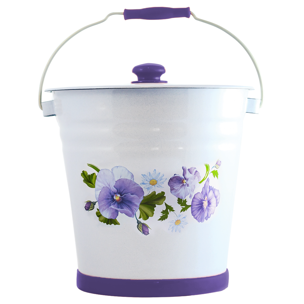 Eimer mit Deckel "Stiefmütterchen" emailliert, 12 L