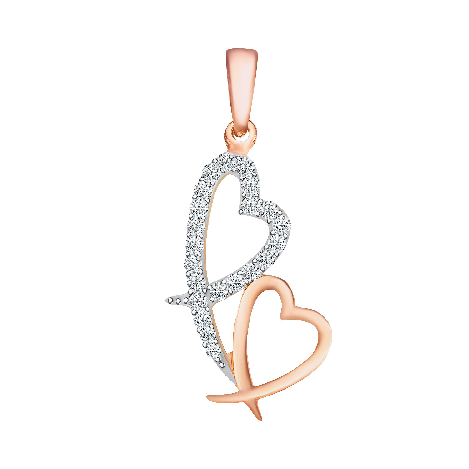 Doppelherz-Anhänger aus 585 Rotgold, mit Zirkonia auf einem Herz