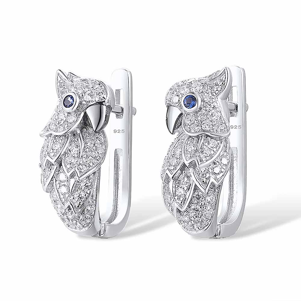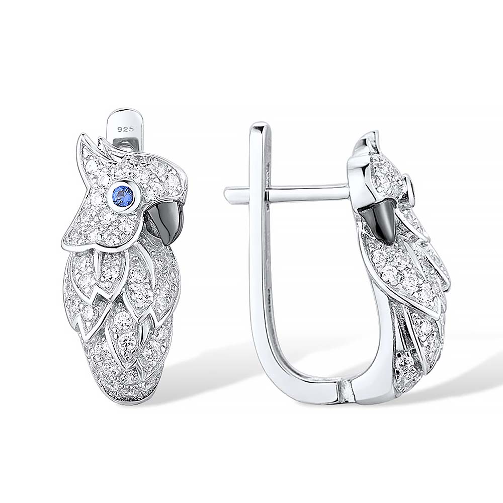 Papageien Orringe aus 925 Silber mit farblosen und blauen Zirkonia