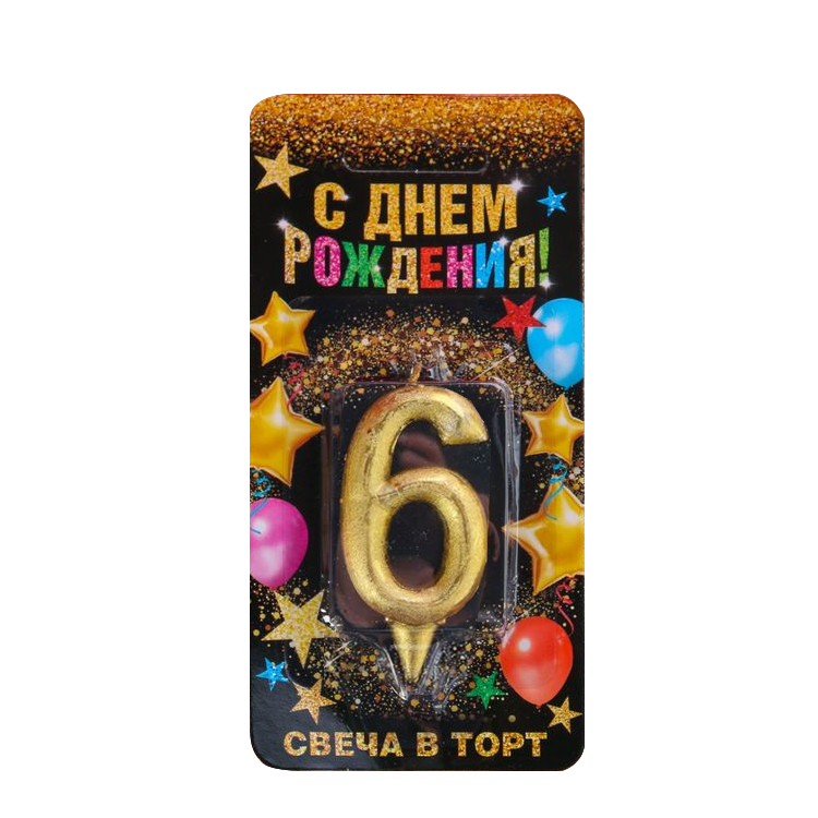 Tortenkerze - Zahl 6, gold, 3 cm × 0,8 cm × 6 cm