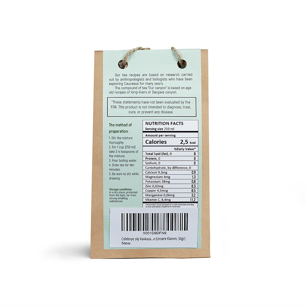 Die Heilkräfte des Kräutertees basieren auf einem alten Rezept der Dargav-Schlucht, die im Kaukasus schon seit vielen hundert Jahren bekannt sind. Der Tee enthält Nutzpflanzen, die in ökologisch sauberen Bedingungen des Mittel- und Hochgebirges gesammelt und angebaut wurden, wo noch nie Düngemittel auf den Boden aufgebracht wurden, wo saubere Flüsse aus Gletschern in einer Höhe von mehr als 4000 Metern über dem Meeresspiegel stammen. Die Komposition gleicht die Stimmung am Tag aus und hilft, den Fluss der obsessiven Gedanken in der Nacht zu stoppen.Eigenschaften:
