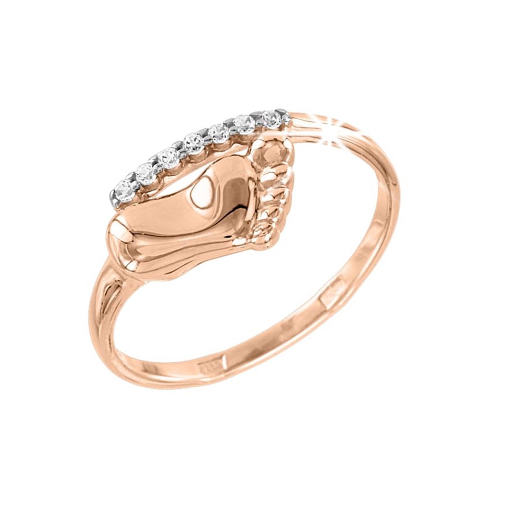 Damenring Babyfuß aus 585 Rotgold mit Zirkonia
