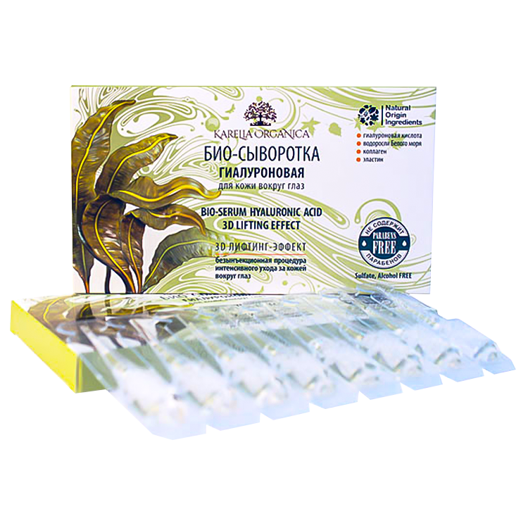 - 1 x "Karelia Organica" Bio-Hyaloron-Augenserum mit 3D-Lifting-Effekt, 8 Ampullen x 2.5 ml