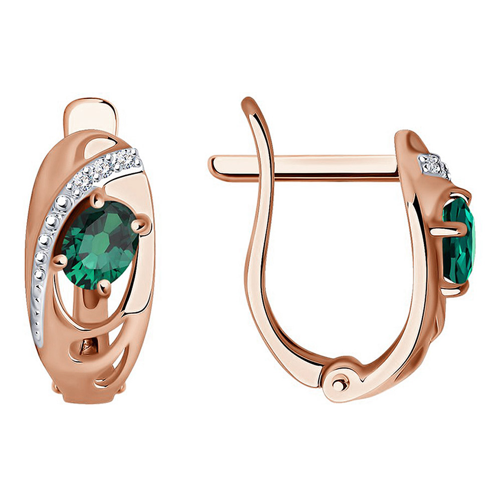 Ohrringe aus 585 Rotgold mit grünem Smaragd und Brillanten von SOKOLOV
