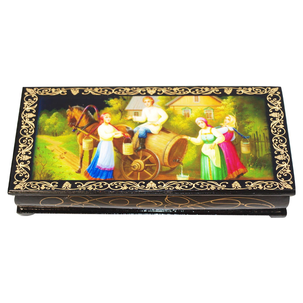 Schatulle für Schmuck oder Kleinigkeiten - Lackminiatur "Wasserträger", ca. 17.5 x 3.5 x 8.5 cm