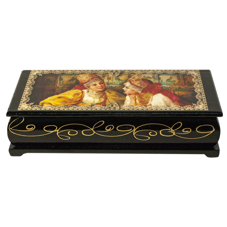 Schatulle für Schmuck oder Kleinigkeiten - Lackminiatur "Schönheiten", ca. 17.5 x 3.5 x 8.5 cm