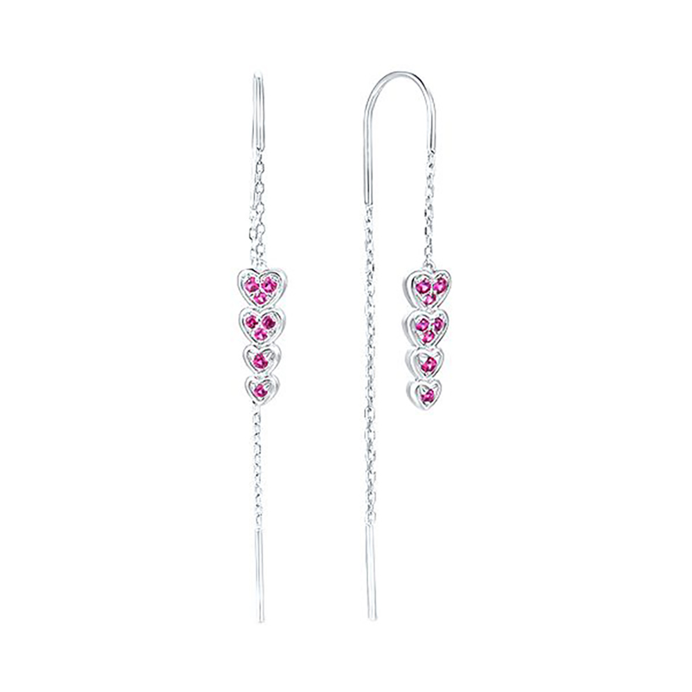 Sokolov Ohrhänger in Herzform aus 925 Silber mit roten Nano-Rubinen und farblosen Zirkonia
