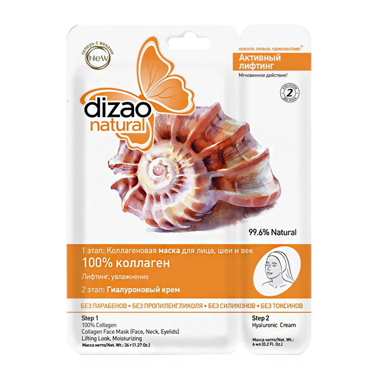 Dizao Natural Kollagen-Gesichtsmaske 100% aktives Lifting 2-stufig, 42 ml