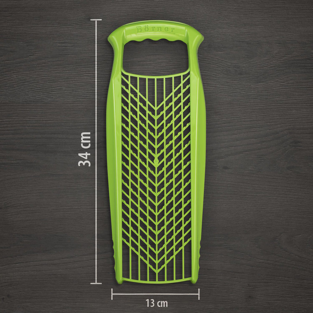Die Börner Küchenreibe ist beidseitig verwendbar. Egal was Sie reiben – ob Obst, Gemüse, harte Rohkost wie Karotten oder Radieschen, Hartkäse oder Schokolade, Zitrusschalen oder Äpfel – die PowerLine-Reibe von Börner ist immer Ihr praktischer Begleiter!Wir empfehlen, weichere Käsesorten vor dem Reiben im Kühlschrank aufzubewahren. Nach Gebrauch unter fließendem Wasser abspülen. Lieferung erfolgt ohne Fruchthalter!