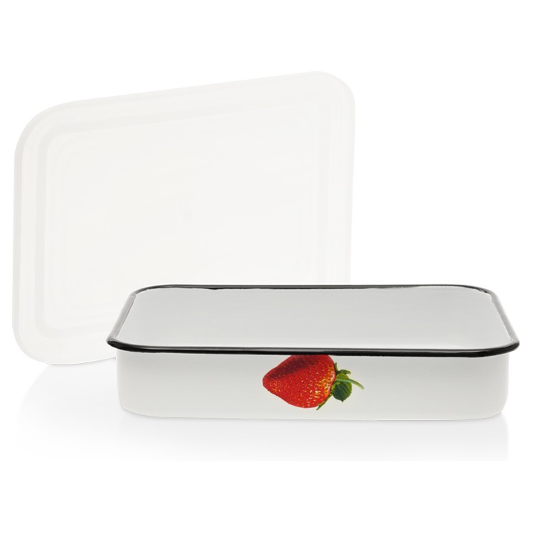 Emailliertes Kochgeschirr ist langlebig und umweltfreundlich, da es aus hochwertigem Stahl hergestellt wird. Das Tablett eignet sich nicht nur zur Aufbewahrung von Lebensmitteln, sondern auch zur Zubereitung von Aufläufen, Gelees, kaltgekochten Kuchen und anderen Snacks. Dieses speziell für die Aufbewahrung konzipierte Tablett hat eine rechteckige, an den Seiten leicht abgerundete Form.Produktinformation: