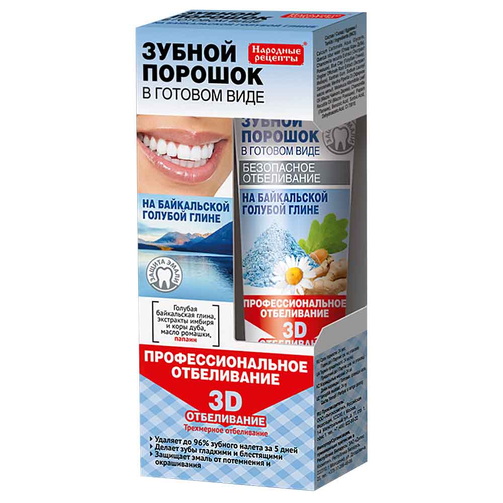 Zahnpulver auf Basis des blauen Baikal-Tons, gebrauchsfertig von "Fito Kosmetik", 45 ml
