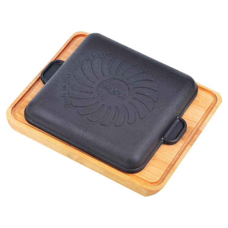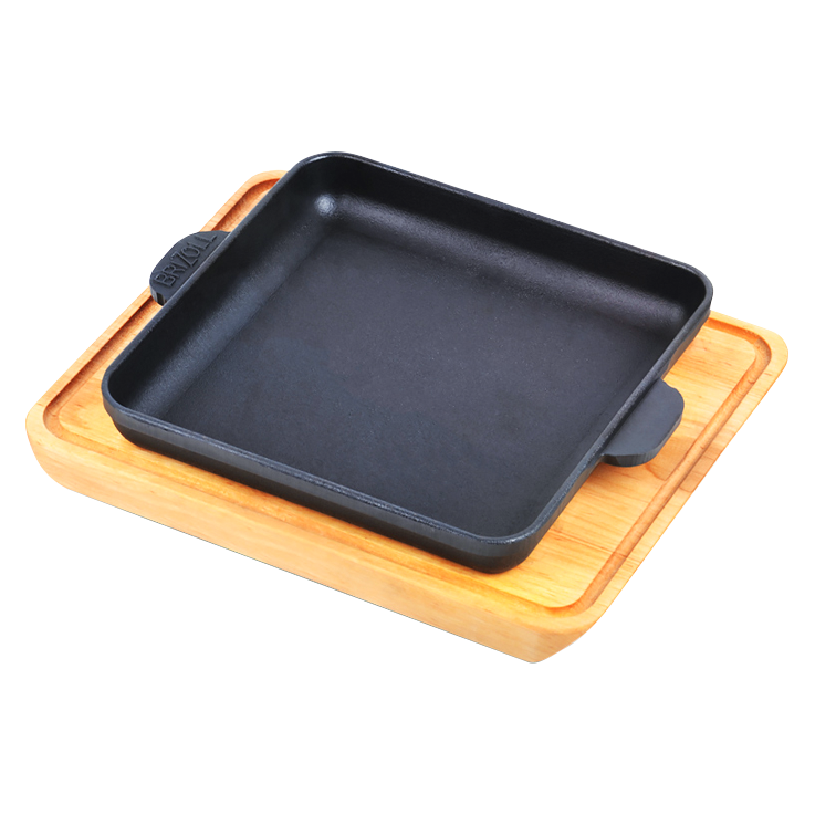 Gusseisen-Vierkantpfanne mit Holzboden "Brizoll" 18 x 18 x 2,5 cm