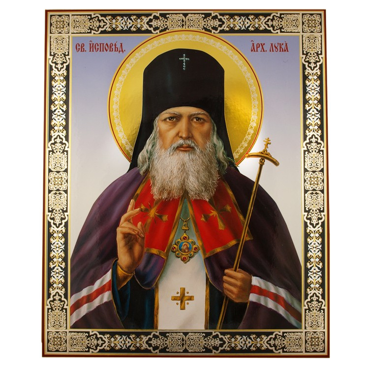 Eingenschaften:- Der heilige Lukas von der Krim und Simferopol ist der Schutzpatron aller medizinischen Wissenschaften und anderer damit verbundener Naturwissenschaften, insbesondere der Chirurgie.