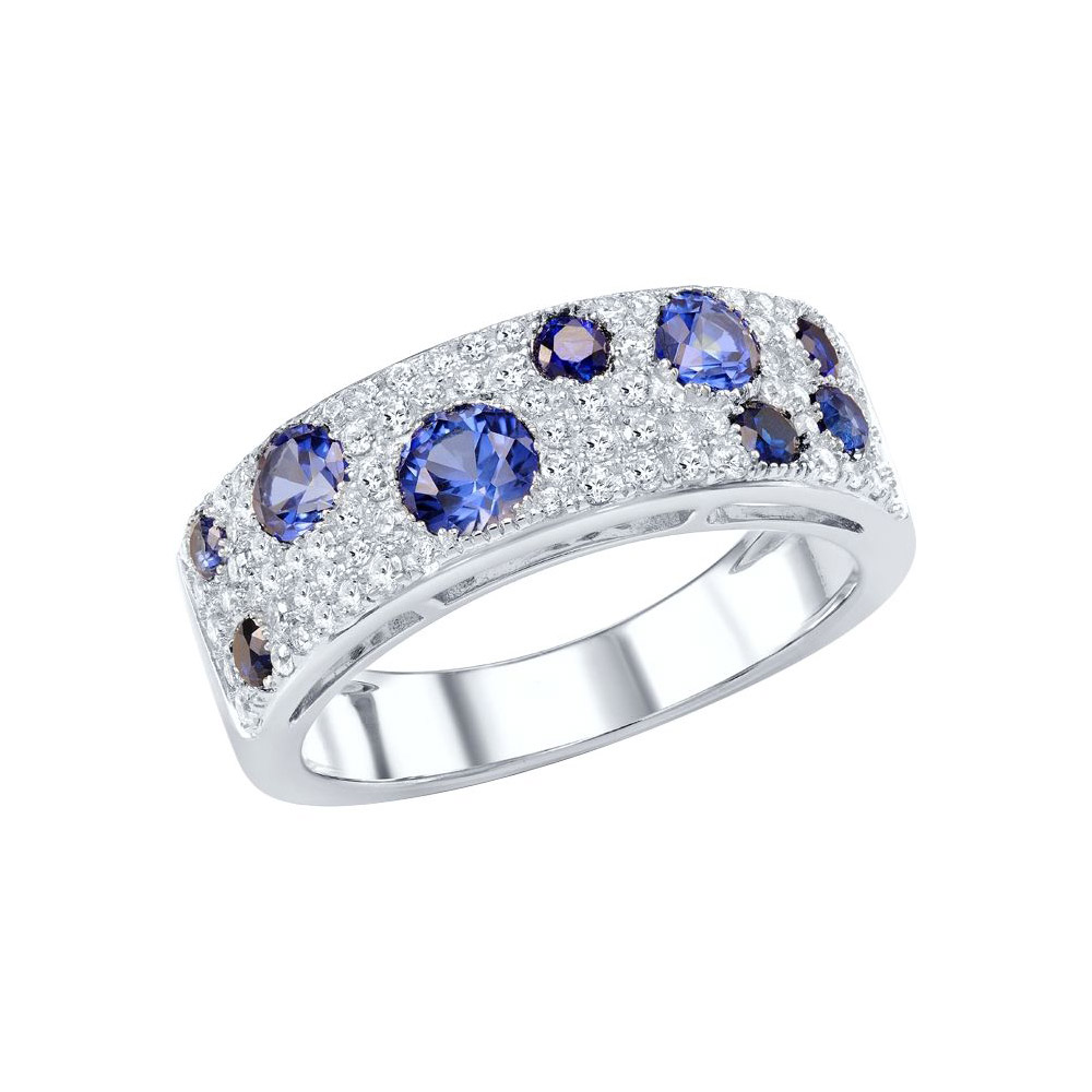 Sokolov Damenring aus 925 Silber mit blauen und farblosen Zirkonia