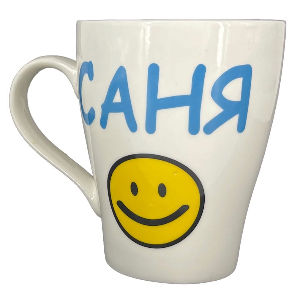 Dieser Becher ist das perfekte Geschenk für jemanden, der Sanja heißt! Der Becher besteht aus hochwertiger Keramik und hat ein Fassungsvermögen von 0,4 Litern, was ihn ideal für den täglichen Genuss von Kaffee, Tee oder anderen Lieblingsgetränken macht. Der blaue Schriftzug „Саня“ verleiht dem Becher eine persönliche Note, während das große gelbe Smiley-Gesicht auf der Vorderseite für ein positives und fröhliches Design sorgt.Dieser Becher ist nicht nur ästhetisch ansprechend, sondern auch praktisch: er ist spülmaschinenfest und pflegeleicht, was ihn zu einem idealen Alltagsbegleiter macht. Mit seinem modernen und freundlichen Design bringt dieser Becher ein Lächeln auf das Gesicht des Besitzers – perfekt als Geschenk oder einfach für den eigenen Gebrauch.