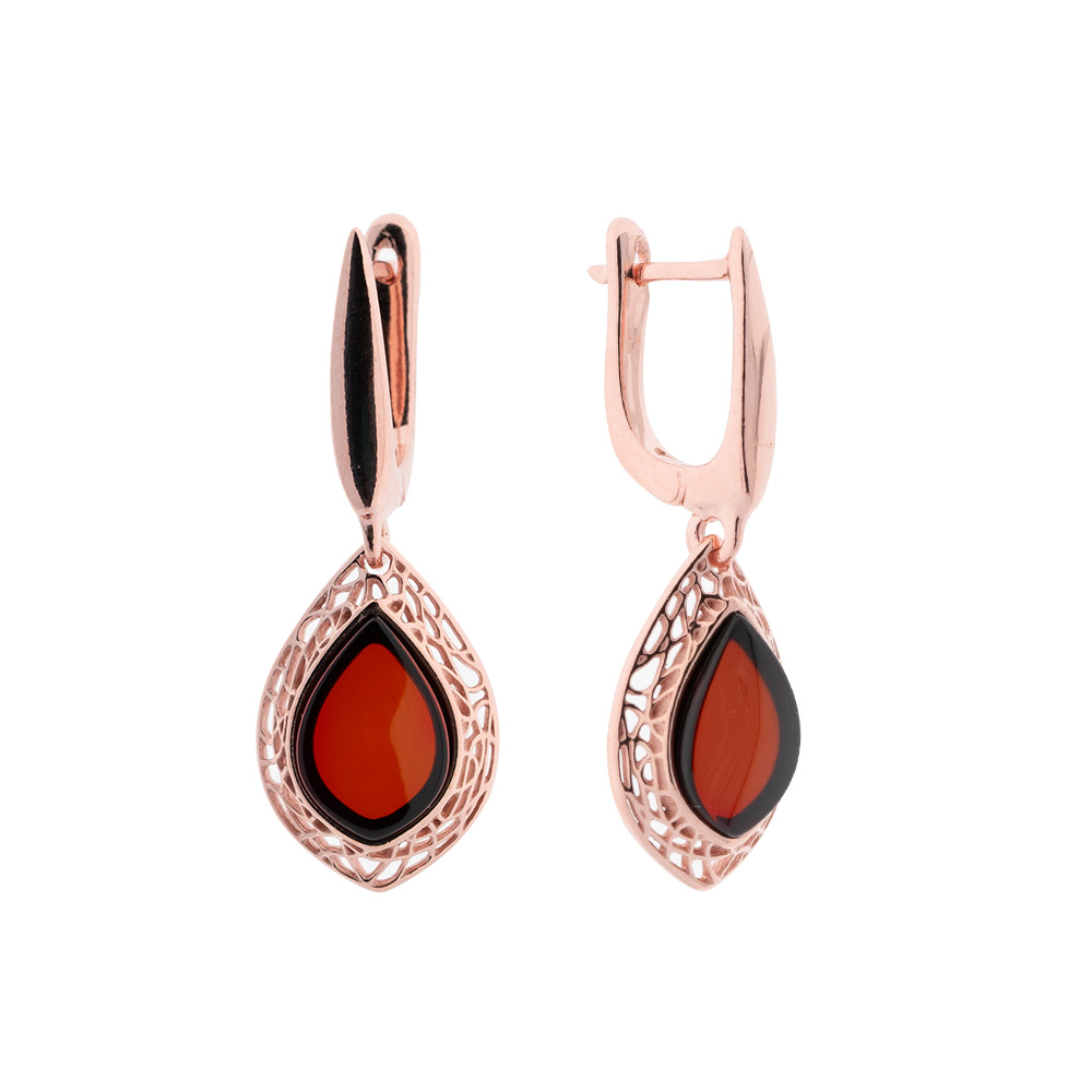 Ohrhänger rosévergoldet aus 925 Silber mit Kirschbernstein