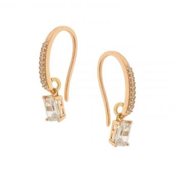 Diese eleganten Ohrringe aus vergoldetem 925er Sterlingsilber vereinen klassische Form und modernen Glanz. Das Design besticht durch feine Linien und einen schmalen, gebogenen Haken, der für einen sicheren und komfortablen Sitz sorgt. An jedem Ohrring hängt ein funkelnder Zirkonia, der in einer feinen, offenen Fassung gehalten wird, um das Licht perfekt einzufangen und das Schmuckstück strahlen zu lassen. Zusätzlich sind entlang des Hakenbügels kleine glitzernde Steine eingearbeitet, die den Ohrringen einen luxuriösen Touch verleihen.Die Form des Steins sorgt für eine ansprechende und elegante Silhouette, die sowohl für den täglichen Gebrauch als auch für besondere Anlässe geeignet ist. Die Kombination aus Vergoldung und funkelnden Elementen macht diese Ohrringe zu einem stilvollen Accessoire, das jedes Outfit aufwertet.
