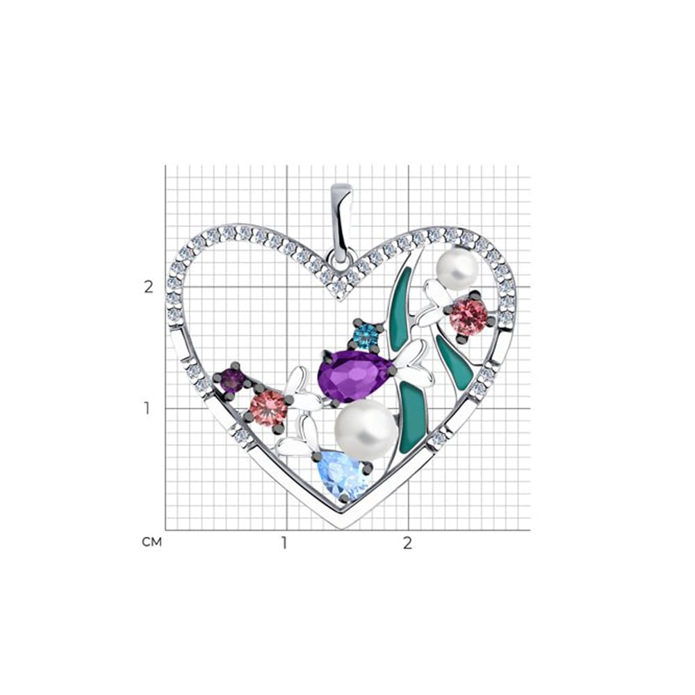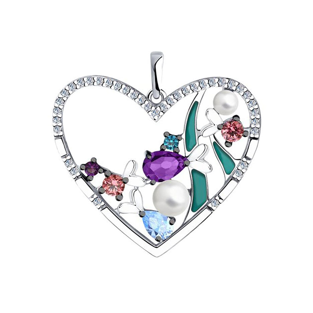 Herz Anhänger aus 925 Silber mit Emaille, Zirkonia und Perlen von SOKOLOV