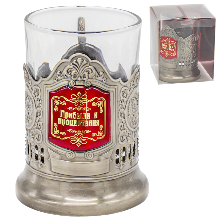 Teeglashalter "Profit und Wohlstand" mit Teeglas, 200 ml