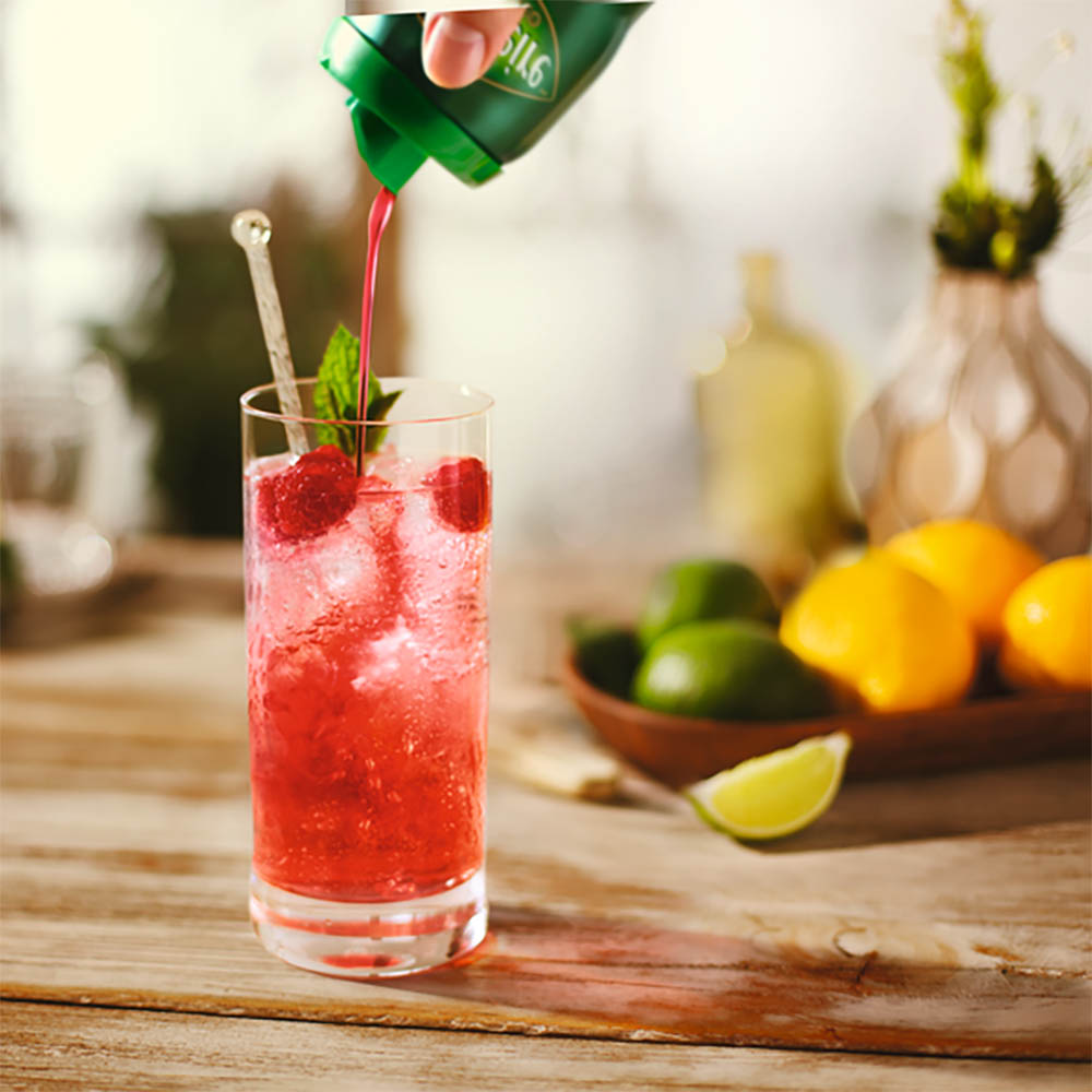- 1/8 Liter Sirup und 7/8 Liter Wasser ergeben 1 Liter fertiges Mischgetränk