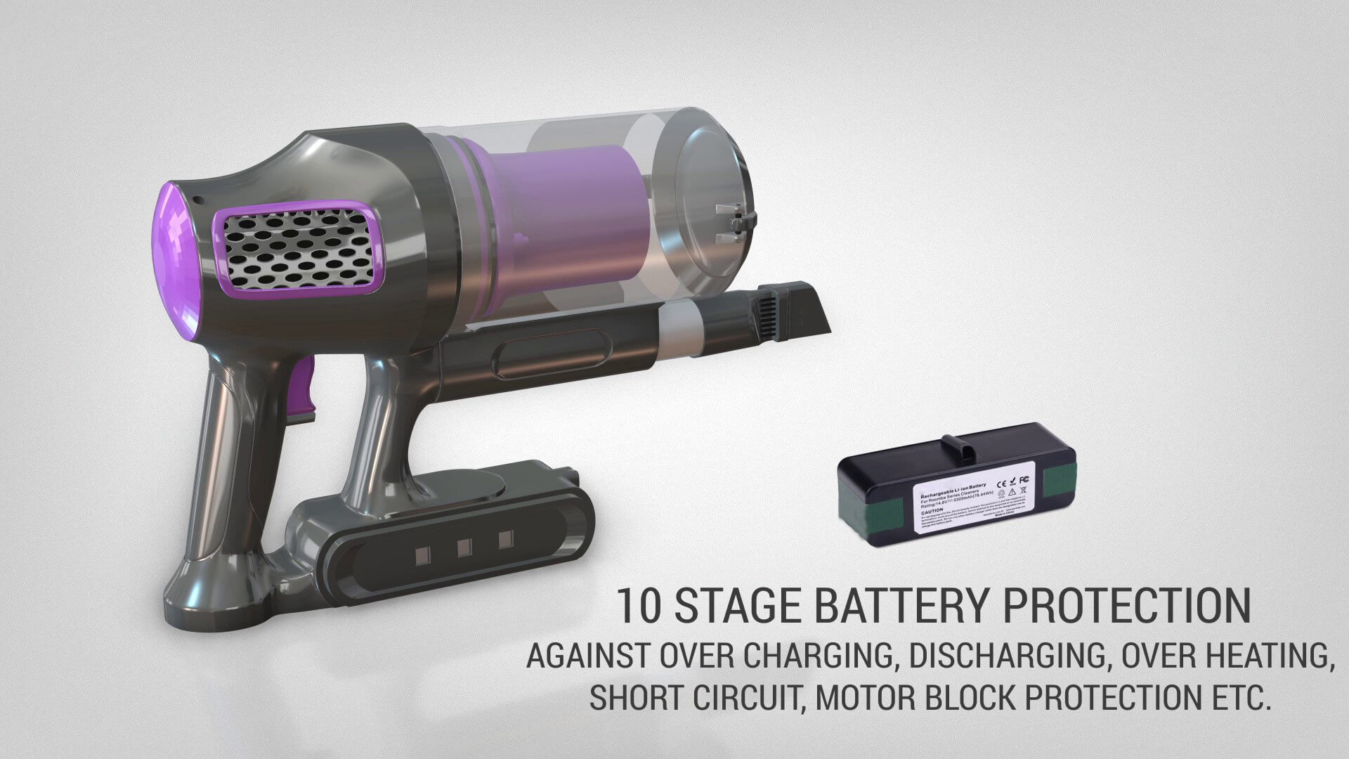 Das kabellose Design macht es Ihnen leicht beim Saugen und sie sind nicht an eine Steckdose gebunden und erzeugt gleichzeitig eine bemerkenswerte Saugleistung von 12 kPa, um eine gründliche und gründliche Reinigung zu gewährleisten.