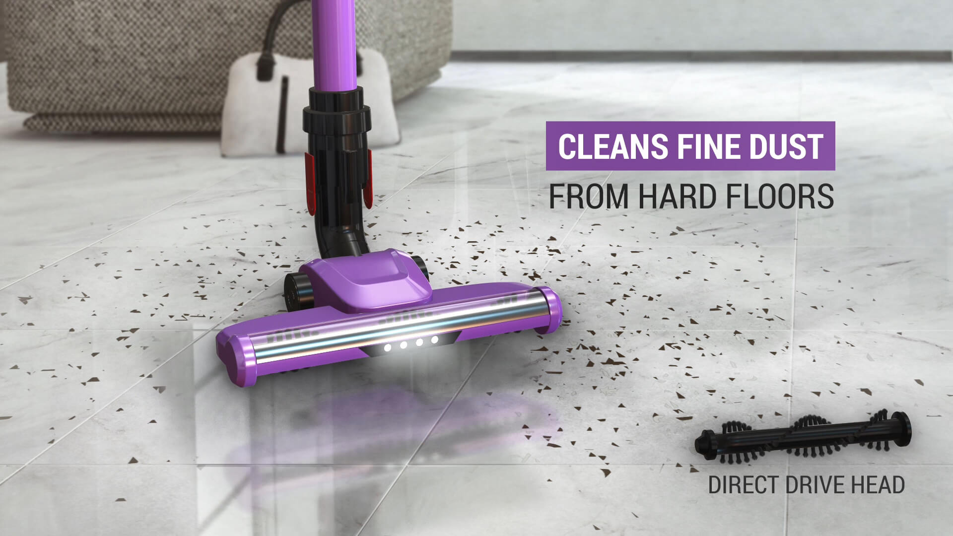 Der flexible Kopf kann um 180 Grad gedreht werden, um den Reinigungsbedarf in jeder Ecke und unter den Möbeln auszugleichen. Dieser Beutellose wird von einem 2200-mAH-Li-Ionen-Akku mit Strom versorgt und verfügt über eine 3-LED-Anzeige für den Batteriestatus.