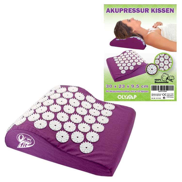 Das Akupressur-Kissen für den Nacken bietet Ihnen Erholung und eine entspannende Wirkung. Das Kissen hat die Form eines "Halbzylinders" und die konvexe Oberfläche ist mit Massageelementen aus 50 Stimulationskreisel mit je 42 Spitzen überzogen. Das Kissen kann unter dem Nacken oder unter der Lendenwirbelbeuge eingesetzt werden und bietet eine gute Akupunkturmassage. Das Kriterium für die richtige Verwendung des Kissens ist ein Wärmegefühl an den Stellen, an denen die Oberfläche des Kissens die Körperoberfläche berührt. Die Massage dauert nur 1-3 Minuten, um den Effekt zu spüren.Produktinformationen: