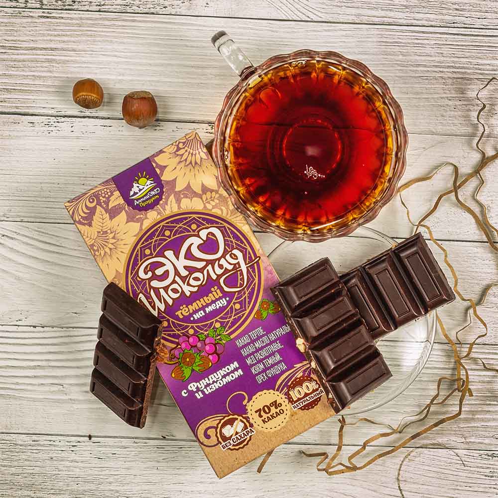 Natürliche Zartbitterschokolade mit Honig anstelle von Zucker ist eine großartige Ergänzung zu Ihrer morgendlichen Tasse Kaffee oder einfach nur, um die Stimmung all derer zu heben, die Süßes lieben.