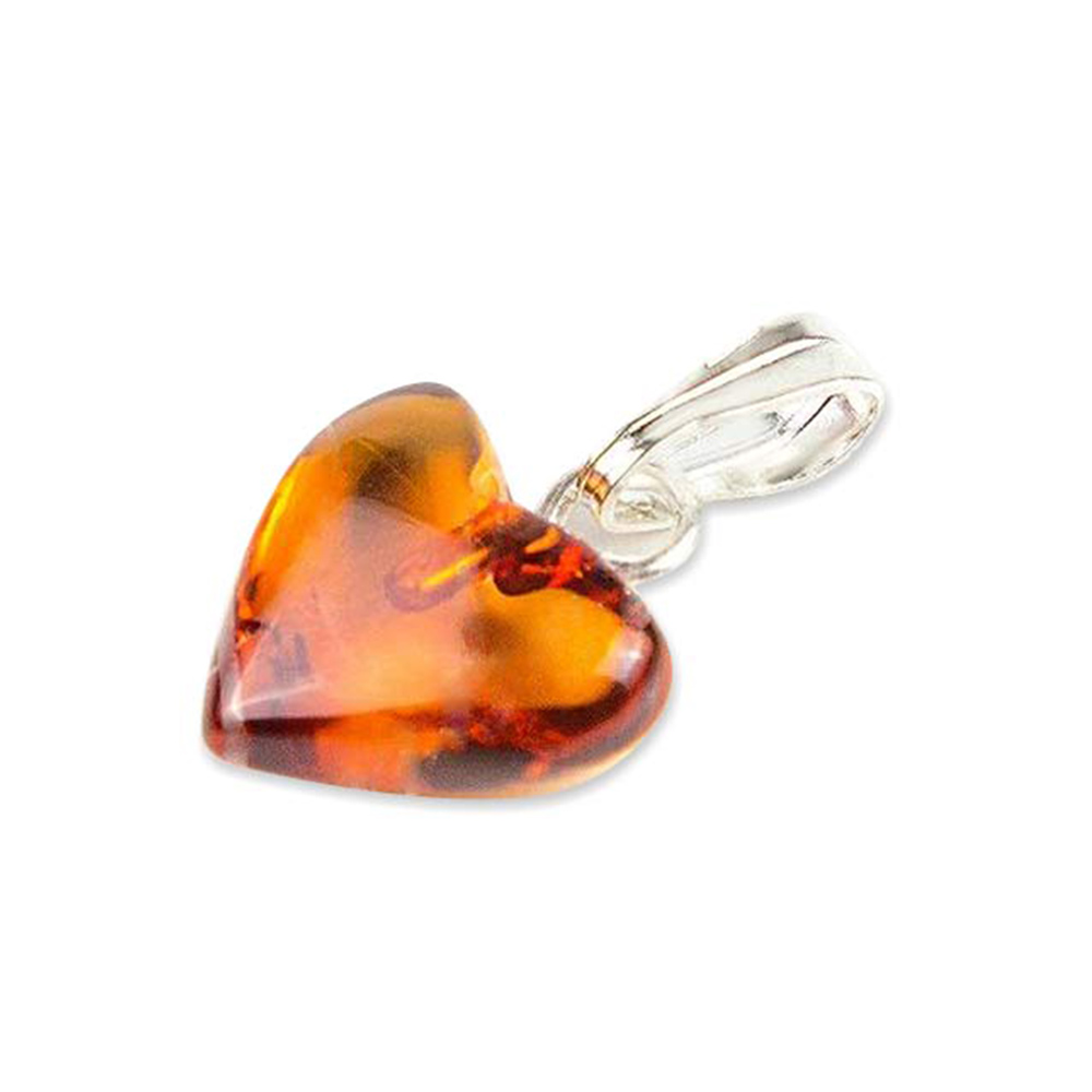 Cognacfarbener Bernstein Charm-Anhänger "Herz" aus Silber