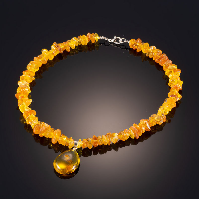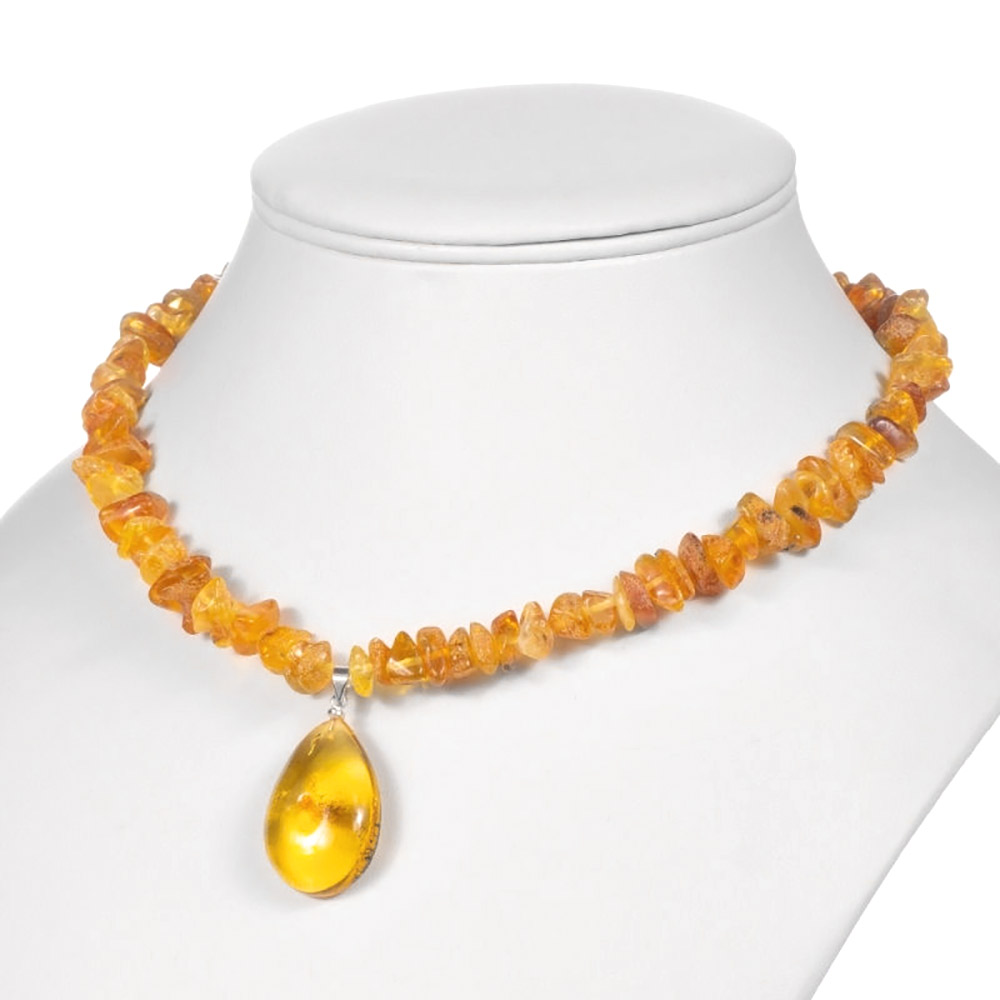 Collier mit großem Anhänger aus massivem Naturbernstein