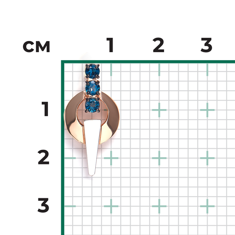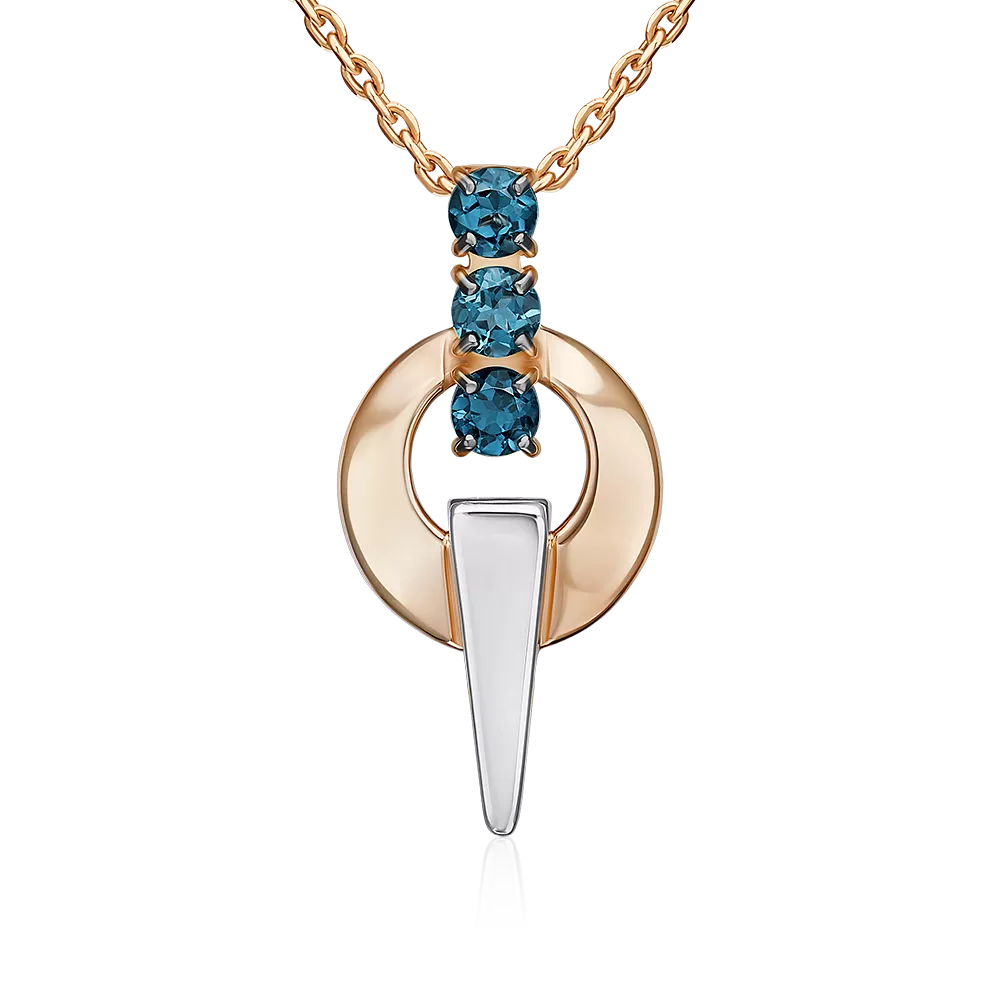 Eleganter Anhänger aus russischem Rot- und Weißgold 585, verziert mit drei funkelnden blauen Topasen
